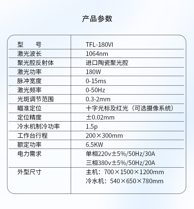3、激光腔采用漫反射陶瓷反射腔,激光轉(zhuǎn)換效率高。