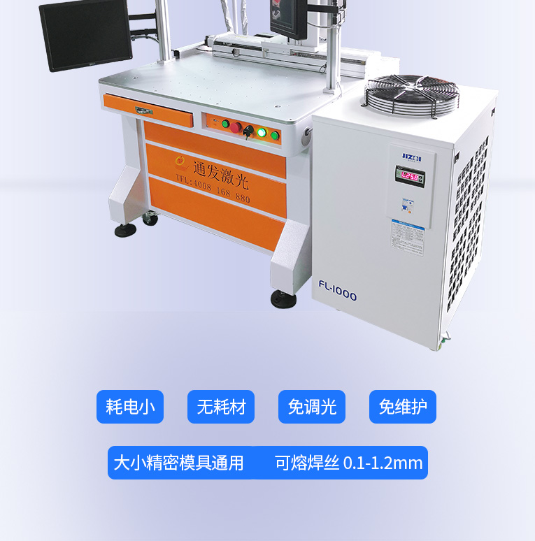1、采用光纖激光器,反射率高,能量強,免維護,免調光,功耗少,相比傳統 模具焊來說,體積小,安全,穩定性好超長使用壽命。